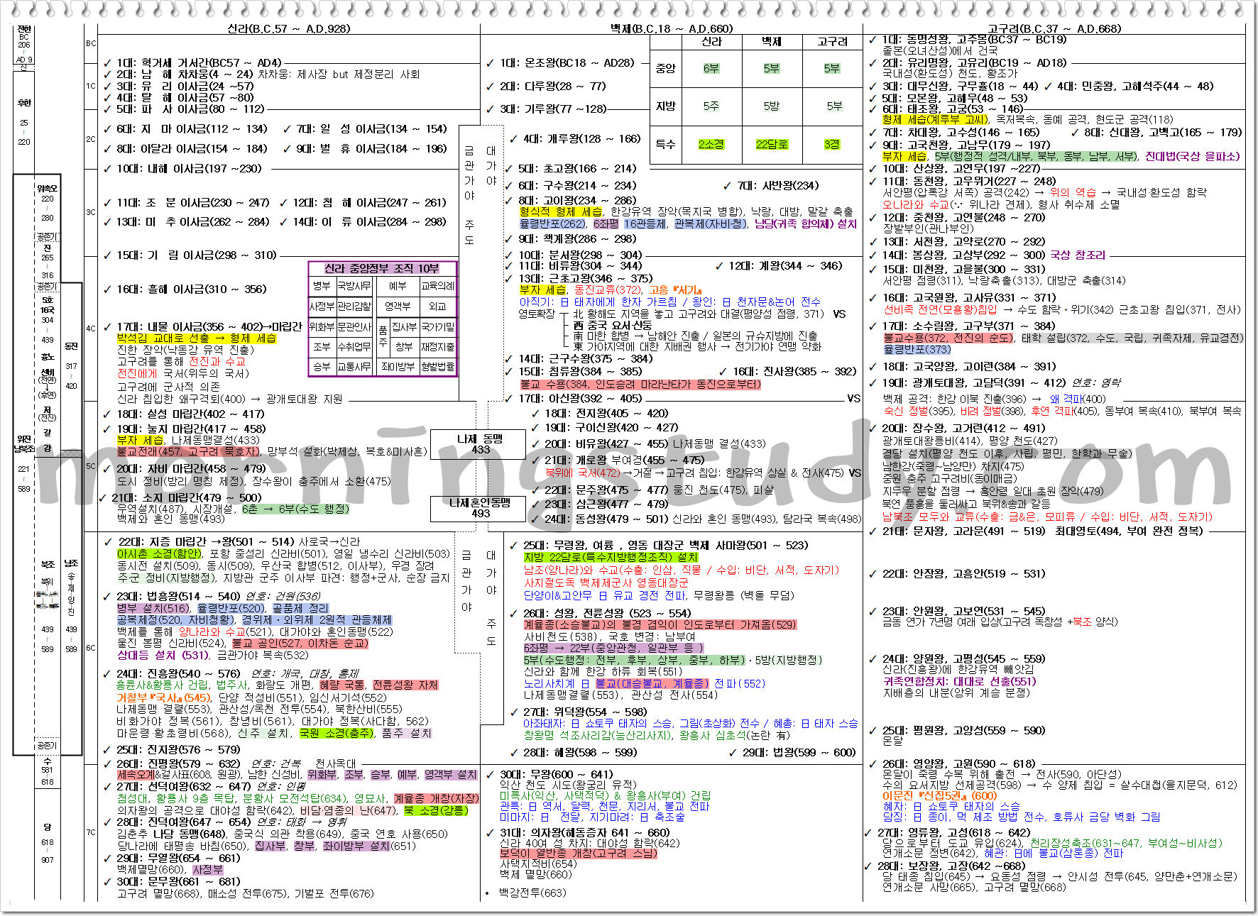 한국사를 공부할 때 가장 중요한 것은 시대별로 주요 사건과 변화를 큰 그림으로 파악하는 것입니다. 이를 위해 제가 추천하는 첫 번째 방법은 역사의 흐름을 간단한 타임라인으로 정리하는 것입니다. 예를 들어, 고조선에서부터 시작하여 삼국시대, 고려, 조선, 근대에 이르기까지 주요 사건들을 시대별로 분류하고, 각 시대의 특징과 중요 인물, 경제적·사회적 변화를 간략하게 메모하는 방식입니다.