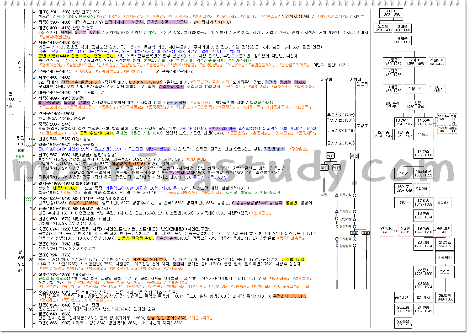 한국사의 모든 사건과 인물을 완벽하게 암기하기는 현실적으로 어렵습니다. 그래서 저는 시험에 자주 출제되는 주요 사건과 인물에 집중해서 공부했습니다. 예를 들어, 조선시대의 정치적 변동, 주요 왕들의 정책과 그 결과, 근대화를 이끈 개혁 등은 반드시 숙지해야 할 내용입니다. 이런 사건들은 여러 시험에서 반복적으로 등장하기 때문에, 이 부분을 집중적으로 공부한다면 고득점을 얻는 데 큰 도움이 됩니다.